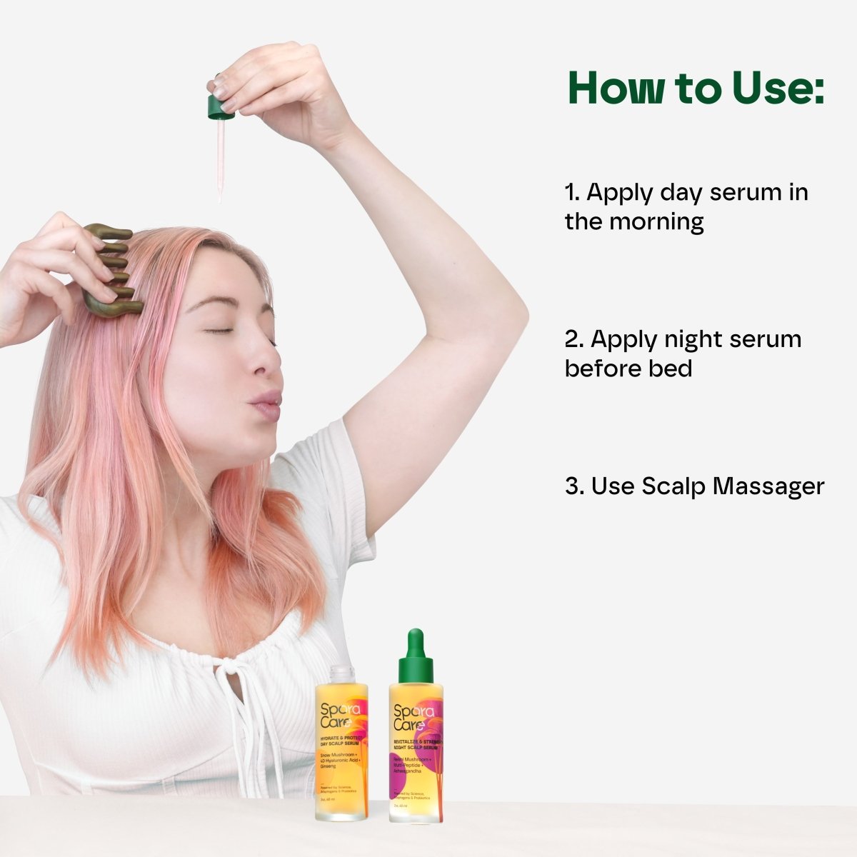 Day Scalp Serum (60 ml) + Night Scalp Serum (60 ml) + Free Sandalwood Scalp Massager