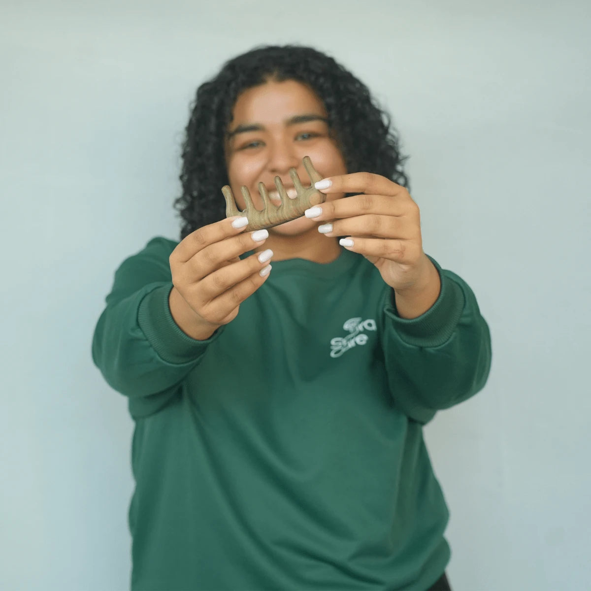 Crafted with smooth sandalwood and ergonomic curves, this massager stimulates blood flow to the scalp, helps reduce itch & oil buildup, and improves absorption of SporaCare scalp serums.